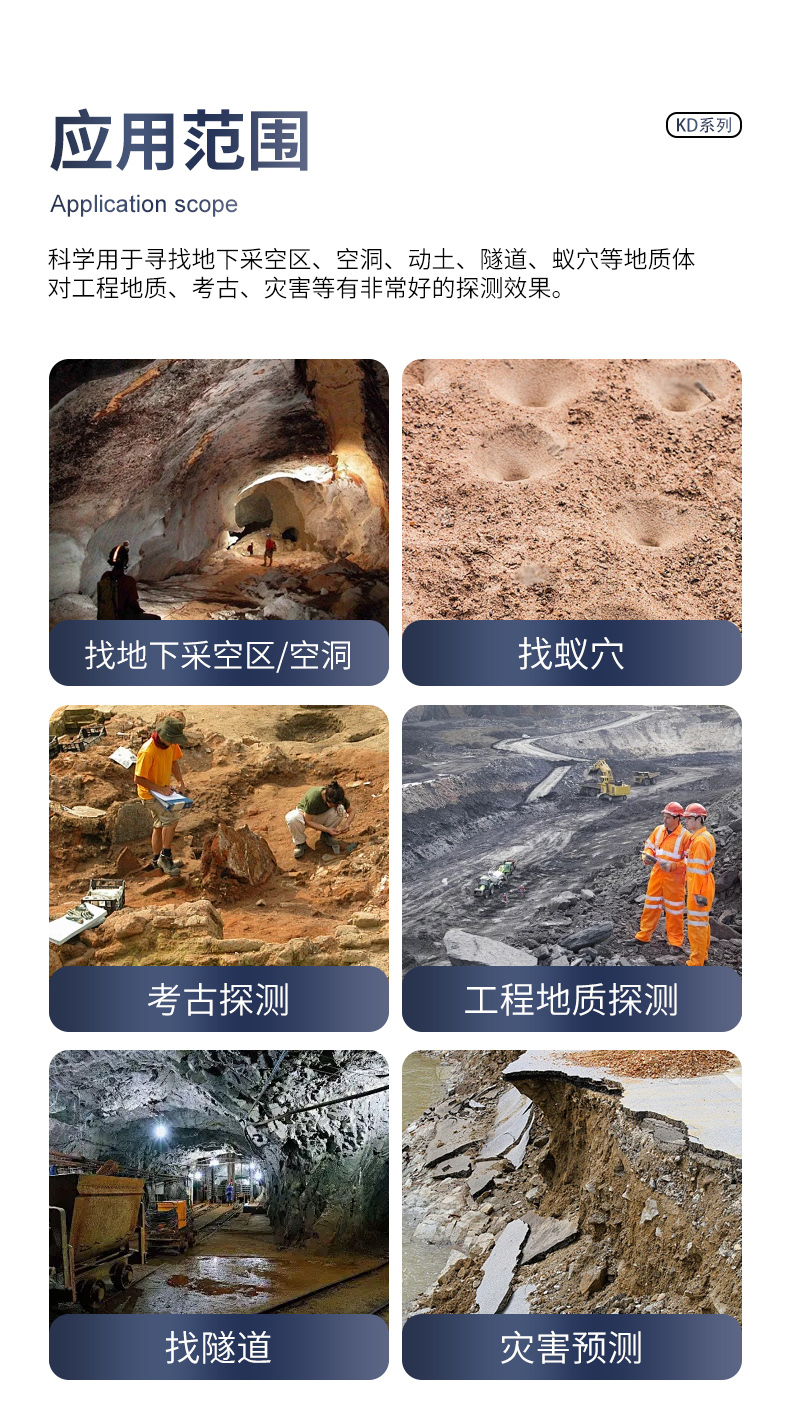 探礦、找水、空洞探測(cè)、找礦、工程勘探、地?zé)崽綔y(cè)、考古、測(cè)井、測(cè)水、找水器、探礦器、找礦等。