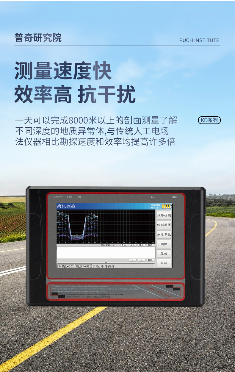 普奇PQ-KD50系列自動(dòng)成圖空洞儀是是利用大地天然電場(chǎng)源不需要通過人工電場(chǎng)即省略了笨拙的供電系統(tǒng)從而實(shí)現(xiàn)了操作簡(jiǎn)單,儀器輕巧。經(jīng)過儀器采集的數(shù)據(jù)通過儀器獨(dú)有內(nèi)置的運(yùn)算功能實(shí)現(xiàn)了自動(dòng)呈現(xiàn)曲線圖、地質(zhì)剖面圖,根據(jù)剖面圖清晰的了解地質(zhì)層結(jié)構(gòu),可快速的確定巖層、溶洞、含水層等具體信息 。